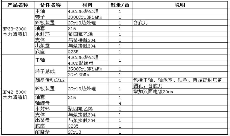 產(chǎn)品名稱: HP33- -3000水力清渣機(jī) 備件名稱:?主軸?轉(zhuǎn)子?篩板裝置?軸套??水封環(huán)?殼體?出漿盤?底座